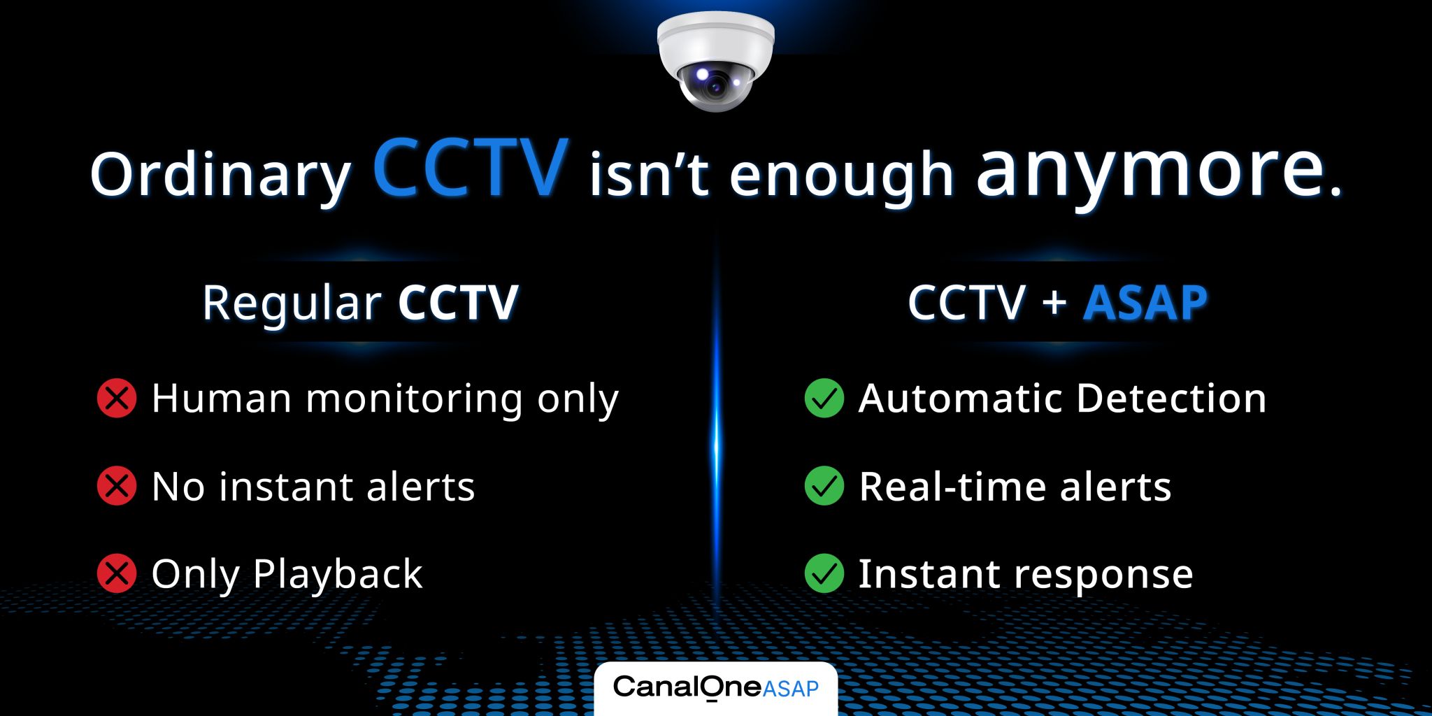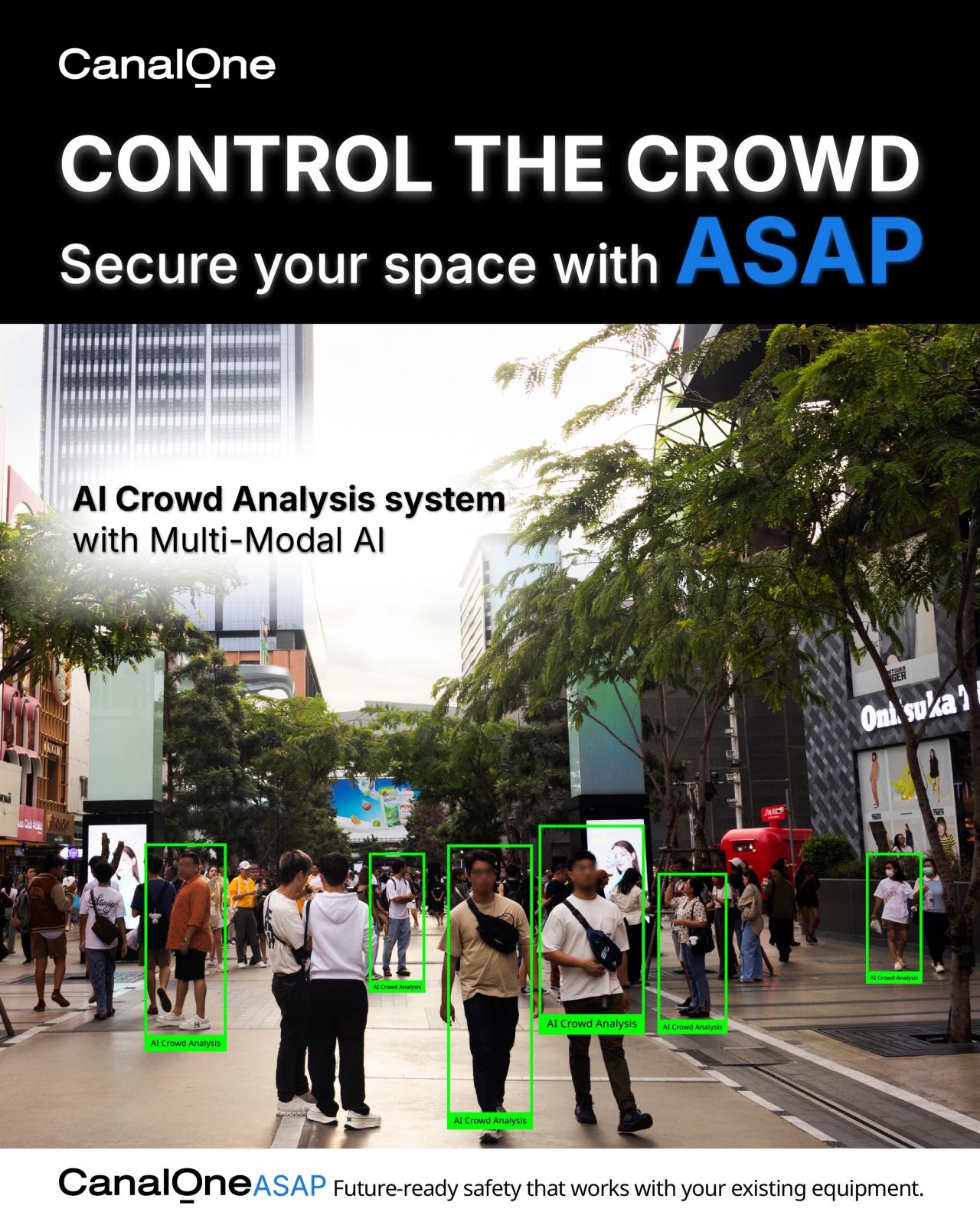 Canal One ASAP (All Smart AI Platform) ตัวช่วย AI อัจฉริยะที่คอยสอดส่องบุคคลที่มีพฤติกรรมน่าสงสัย พฤติกรรมผิดปกติ และอาวุธที่อาจถูกนำเข้ามาในพื้นที่ พร้อมแจ้งเตือนผ่านมือถือหรืออุปกรณ์ของคุณทันที