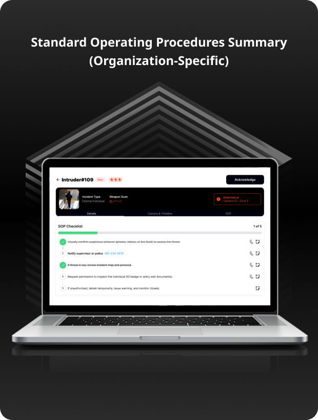 ASAP automatically executes critical actions like triggering voice alerts, locking doors, or dispatching drones to the scene the moment an anomaly is detected.