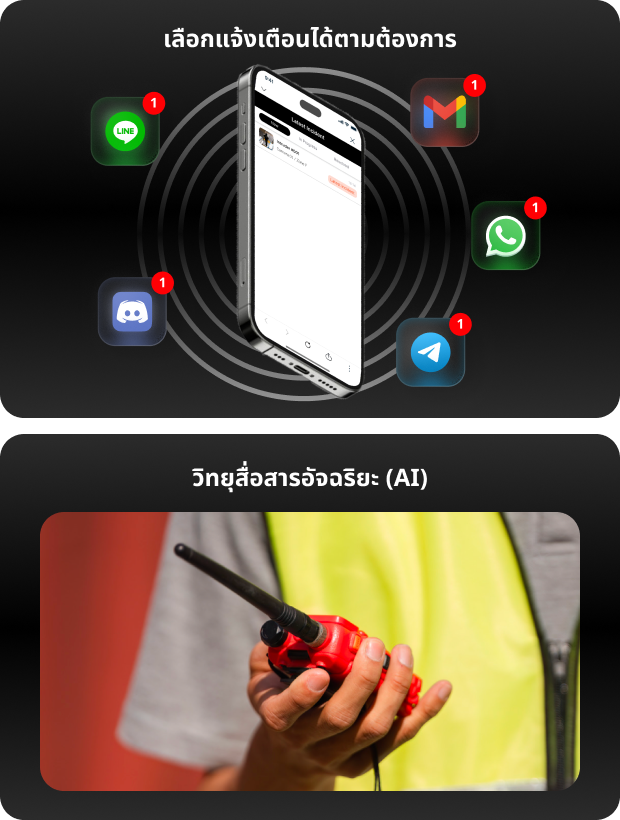 จากจุดเกิดเหตุถึงหน่วยงานรับผิดชอบ ระบบส่งข้อมูลผ่าน LINE,โทรศัพท์, วิทยุ หรือ API ไปยังหน่วยงานภายนอกที่เกี่ยวข้องได้แบบอัตโนมัติ